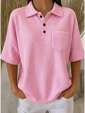 Per donna Camicia a nido d'ape Top estivi Tasca Bottoni Tinta unica Vintage Elegante Senza Maniche Mezza Manica Colletto Polo Top Regolari Casuale Quotidiano All'aperto Blu Bianco Giallo Rosa Rosso