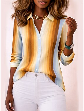 Per donna Camicia Blusa Bottoni A righe Moderno Casual Manica Lunga Colletto a Camicia Top Regolari Quotidiano Ferie Uscire Giallo Verde Autunno