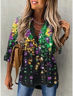 Per donna Camicia Blusa Patchwork Bottoni Stampato Grafico Geometrico Vintage Tropicale Elegante Manica Lunga Colletto a Camicia Top Regolari Quotidiano Blu Viola Verde Grigio Estate Primavera