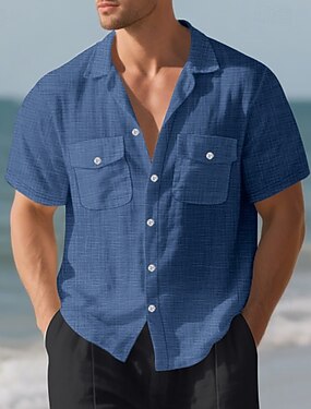 Per uomo Camicia Camicia Estiva Camicia casual Camicia da Spiaggia Camicia con Bottoni Nero Bianco Blu marino Albicocca Grigio Manica Corta Semplice Bavero Vacanza Camicia hawaiana Tasca Abbigliamento