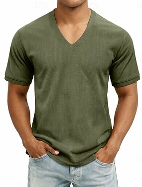 Per uomo Camicia di Velluto a Coste Maglietta Manica Corta Scollo a V Estate Primavera Autunno Tinta unica Semplice A righe Moda Designer Casual Bottoni Caldo Casuale Quotidiano All'aperto Nero Blu