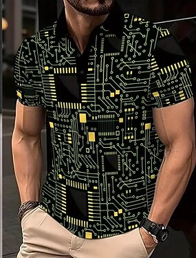 Per uomo Astratto Polo Manica Corta Magliette polo Camicie con Colletto Casual All'aperto Abbigliamento quotidiano Stampa 3D Estate Nero