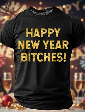 Capodanno Per uomo Buon anno Fuochi d'artificio 2026 Maglietta Manica Corta maglietta Stampa 3D Girocollo Camicia Esagerato Designer Artistico Club Feste Streetwear Blu 1# Nero Rosso Autunno Inverno