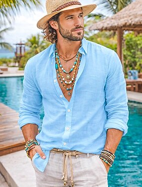 Per uomo Camicia Camicia di lino Camicia Estiva Abbigliamento da spiaggia Camicia con Bottoni Semplice Casuale Quotidiano Nero Bianco Rosa Verde militare Manica Lunga Colletto Estate Primavera