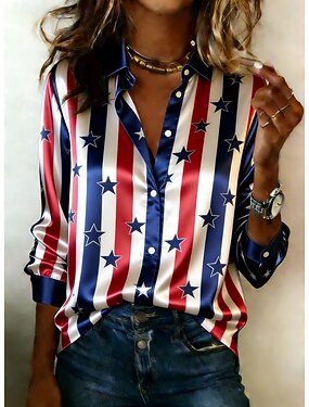 Giorno dell'Indipendenza Americana Per donna Camicia Camicia in raso Camicia button-down Camicia casual Stampato Grafico A righe Classico Casual Manica Lunga Colletto a Camicia Top Regolari