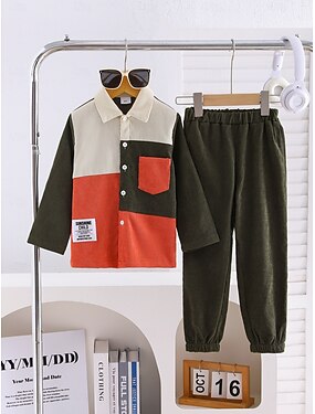 2 Pezzi Bambino (1-4 anni) Ragazzi Camicia & Pantaloni Vestito Lettera Manica Lunga Patchwork Impostare All'aperto Moda Quotidiano Autunno Inverno 4-7 Anni Multicolore
