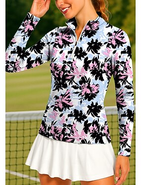 Per donna Floreale Polo da golf Maglia da tennis Maglietta da tennis Manica Lunga Stampato Zip a un quarto Pullover Protezione UV Elastico Traspirante Tennis Golf Pickleball Collo Alto Collo con zip