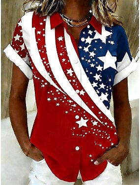 Giorno dell'Indipendenza Americana Per donna Camicia Grafico Bandiera Vintage Elegante Casual Manica Corta Colletto a Camicia Top Regolari Quotidiano Bianco Rosso Estate Primavera