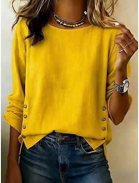 Per donna Camicia di lino Blusa Patchwork Bottoni Semplice Elegante Vacanza Manica Lunga Girocollo Top Regolari Quotidiano Ferie Uscire Blu Nero Bianco Giallo Rosa Estate Primavera