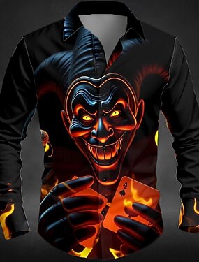Camicia da uomo costumi demonio glow neon camicia a bottoni maniche lunghe stile punk gotico scuro outdoor vacanza estate primavera colletto stampa 3D nero verde nero e blu