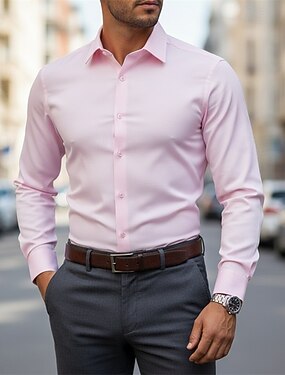 Per uomo Camicia elegante Camicia con Bottoni Semplice Lavoro Matrimonio Rosa chiaro Blu chiaro Vino Blu reale Manica Lunga Collo ripiegato Tutte le stagioni Abbigliamento