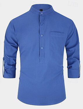Per uomo Camicia Camicia popover Camicia Estiva Camicia casual Camicia con colletto alla coreana Nero Bianco Blu Manica Lunga Semplice Henley Vacanza Quotidiano Pieghe Abbigliamento Cotone Misto