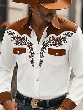 Per uomo Stampa Floreale Etnico Fiori Camicia Camicia Western Camicia da cowboy Manica Lunga Vintage Retrò Casuale All'aperto Abbigliamento da lavoro Primavera Autunno Collo ripiegato Due tasche