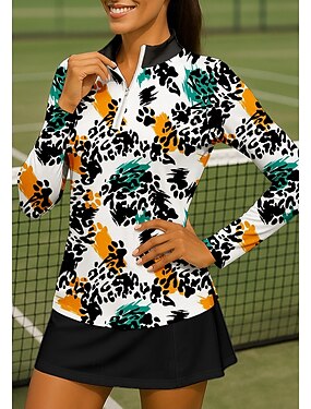 Per donna Leopardo Sfumatura Maglietta Maglietta sportiva Polo da golf Maglia da tennis Manica Lunga Cerniera Floreale UPF50+ Resistente ai Raggi UV Alta elasticità Traspirante Tennis Golf Pickleball