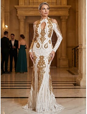 Tubino Colonna Lunghezza al pavimento Abito da ballo con mantello Abito da Sera Abito formale Elegante Stile Celebrità Manica Lunga Collo Alto Festa in giardino Matrimonio Raso con Glitter Scialle