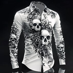 Camicia da uomo con teschi Camicia button up Camicia da cerimonia casual a maniche lunghe Stile gotico scuro Vacanza Estate Primavera Colletto in stampa 3D Bianco 1 Bianco