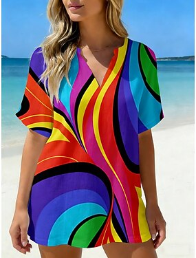 Per donna Camicia Camicia casual Camicia da Spiaggia Blusa Stampato Grafico Astratto Elegante Classico Moderno Manica Corta Scollo a V Top Regolari Quotidiano Ferie Uscire Blu Rosa Viola Verde