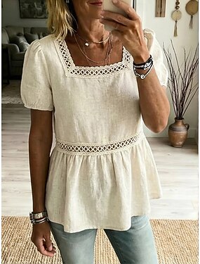 Per donna Camicia Elegant Top in raso Top estivi Arricciato Patchwork Asimmetrico Semplice Elegante Vintage Signore Manica Corta Scollo a V Top Regolari Quotidiano Lavoro Ferie Cachi Estate Primavera
