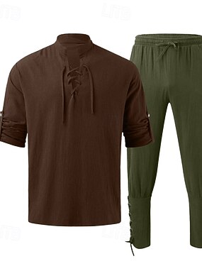Set Retrò Vintage Medievale Rinascimento Pantaloni Camicia con accessori Lunghe Vichingo Ranger Allacciato Tinta unica Scollo a V Costume Per uomo Vichingo Mascherata Fiera Rinascimentale LARP Adulti
