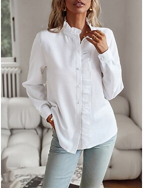 Camicia da donna in lino simile traspirante leggera grafica floreale elegante bohemia vintage a maniche lunghe colletto top regolari lavoro quotidiano vacanza arricciatura blu bianco rosa arancione