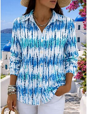 Per donna Camicia Bottoni Stampato Grafico Astratto Vintage Elegante Moderno Manica Lunga Colletto a Camicia Top Regolari Quotidiano Blu Bianco Rosa Arancione Estate Primavera