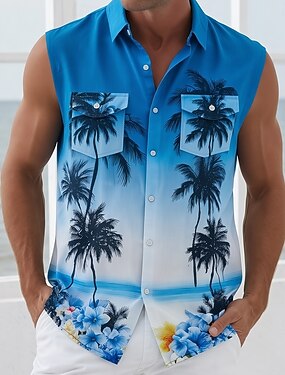 Per uomo Albero di Cocco Fiori tropicali Colore sfumato Camicie hawaiane Camicie tropicali Maglietta senza maniche Senza Maniche Hawaiano All'aperto Spiaggia Casual Estate Primavera Collo ripiegato