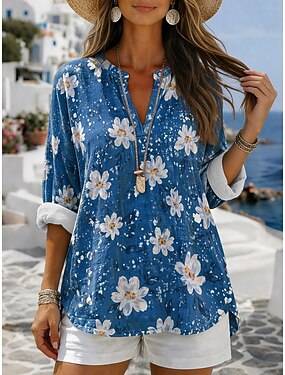 Per donna Blusa Stampato Floreale Grafico Quotidiano Elegante Essenziale Scollo a V Top Regolari Quotidiano Blu Nero Rosa Rosso Viola Estate Primavera