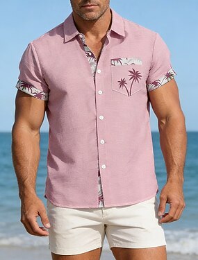 Per uomo Camicia Camicia di lino Camicia Estiva Camicia da Spiaggia Camicia con Bottoni Albero di Cocco Vacanza Casuale Nero Bianco Verde chiaro Rosa Manica Corta Collo ripiegato Estate Abbigliamento