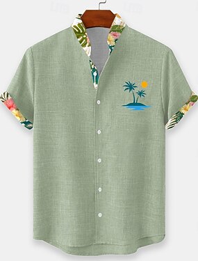 Per uomo Albero di Cocco Piante Tropicali Fiori Camicia hawaiana estiva Camicia con Bottoni Camicia con colletto alla coreana Manica Corta Hawaiano Vacanza Abbigliamento Quotidiano Abbigliamento mare