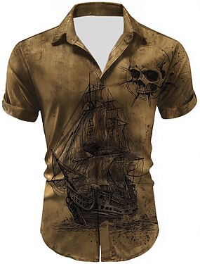 Per uomo Camicia Camicie Pop art Feste Giornaliero Nero Viola Verde Manica corta Collo ripiegabile Estate Abbigliamento Bottoni