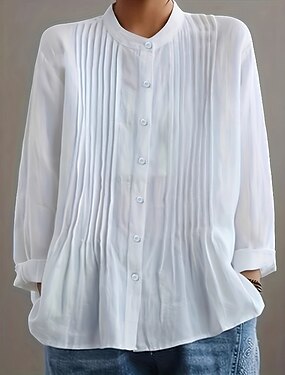 Per donna Blusa Finto cotone e lino Arricciato Bottoni Semplice Casual Manica Lunga Girocollo Top Regolari Quotidiano Ferie Uscire Bianco Blu marino Estate Primavera