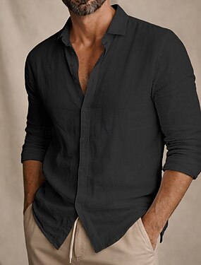 Per uomo camicia di lino Camicia estiva Abbigliamento mare Maglietta informale Camicia con bottoni Liscio Informale Giornaliero Nero Bianco Azzurro cielo Grigio Manica lunga Collare da campo