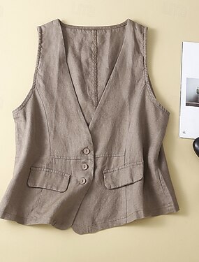 Per donna Finto cotone e lino Tasca Bottoni Semplice Essenziale Casual Senza Maniche Scollo a V Top Regolari Ferie Uscire Nero Arancione Verde Cachi Beige Estate