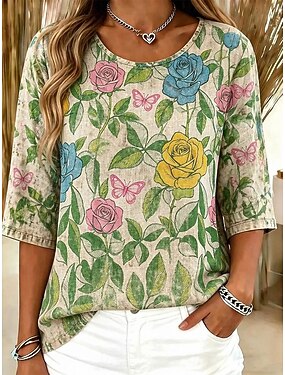 Per donna Blusa Stampato Floreale Grafico Bohemien Vintage Tropicale Manica 3/4 Girocollo Top lunghi Casuale Quotidiano Abbigliamento da vacanza Giallo Estate Primavera