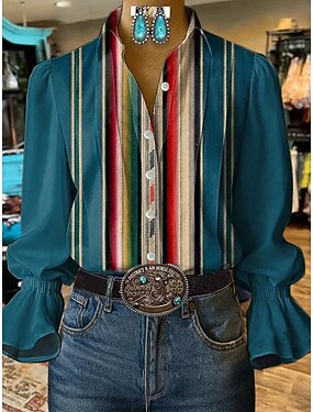 Per donna Camicia Camicia Boho Blusa Stampato Grafico Vintage Elegante Classico Manica Lunga Girocollo Top Regolari Quotidiano Ferie Uscire Giallo Rosso Arancione Grigio chiaro Estate Primavera