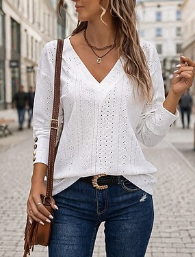 Per donna Top traforato Maglietta traforata Testurizzato Grafico Piante Moda Classico Manica Lunga Scollo a V Top lunghi Casuale Quotidiano Spiaggia Blu Bianco Rosa Verde Azzurro Estate Primavera