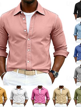 Per uomo Camicia Camicia casual Camicia con Bottoni Camicia lavata con acido Blu Nero Bianco Giallo Rosa Manica Lunga Semplice Bavero All'aperto Casuale Abbigliamento Moda Moderno Elegante casual
