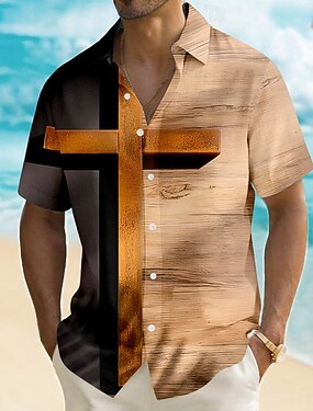 Per uomo Croce Religione Camicia Camicia Western Camicia da cowboy Manica Lunga Vintage Retrò Casuale All'aperto Abbigliamento da lavoro Primavera Autunno Collo ripiegato Stampa 3D Camicia tipo lino