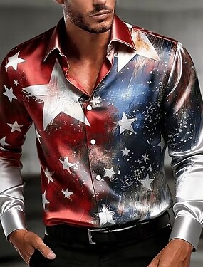 Per uomo Stella 4 luglio, 250° anniversario degli Stati Uniti Bandiera Americana Camicia Camicia in raso Camicia Estiva Manica Lunga Patriotico All'aperto Festival Estate Primavera Collo ripiegato