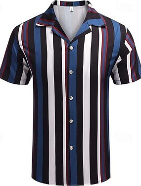 Per uomo Camicia Camicia Estiva Camicia casual Camicia da Spiaggia Camicia con Bottoni Camicie a righe Nero Rosso Blu Grigio Manica Corta A righe Collo ripiegato Vacanza Camicia hawaiana Abbigliamento
