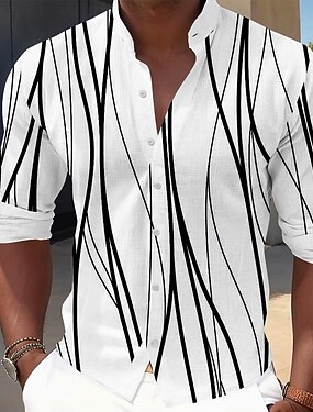 Per uomo Geometrico Linea Camicia Camicia con Bottoni Camicia con colletto alla coreana Manica Lunga Casual Quotidiano All'aperto Vacanza Primavera Autunno Collo alla coreana Colletto alla coreana