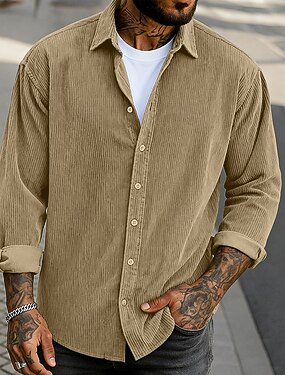 Per uomo Camicia Camicia casual Camicia di Velluto a Coste Camicia con Bottoni Nero Kaki Verde militare Grigio Manica Lunga Tinta unica Collo ripiegato Casuale All'aperto Caldo Abbigliamento Vintage