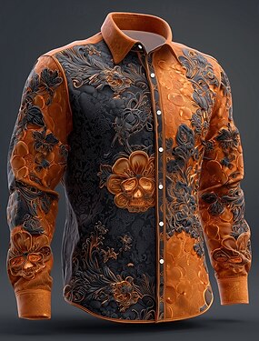 Per uomo Stampa Floreale Gotico Giorno dei Morti Camicia Camicia con Bottoni Manica Lunga Vintage Retrò All'aperto Ferie Primavera Autunno Collo ripiegato Stampa 3D Camicia tipo lino Arancione