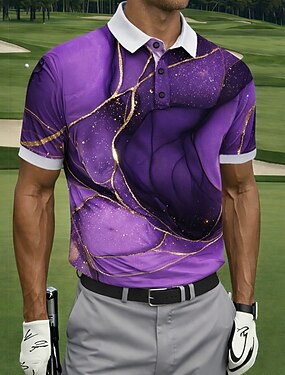 Per uomo Marmo Golf Polo Sportivi Manica Corta Magliette polo Camicie con Colletto Casual Athleisure Bottoni Estate Primavera Blu Viola Verde