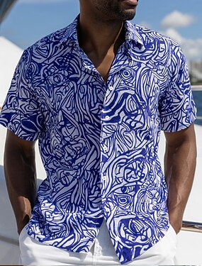 Per uomo Motivo Geometrico Arte astratta Camicia Camicia con Bottoni Manica Corta Moda Casual Abbigliamento casual alla moda Vacanza Estate Primavera Collo ripiegato Stampa 3D camicie con colletto