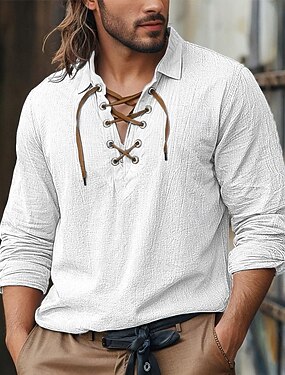 Per uomo Camicia Camicia di lino Stile vichingo Camicia Estiva Abbigliamento da spiaggia Camicia pirata Tinta unica Vacanza Casuale Nero Blu marino Azzurro cielo Verde Manica Lunga Senza colletto