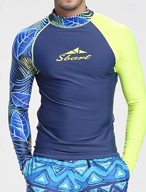Per uomo Top sottomuta Top da bagno Camicia Dive Skin Patchwork Gamba lunga fino al ginocchio UPF50+ Asciugatura Rapida Alta elasticità Manica Lunga Costume da Bagno Surf Immersione Snorkeling Estate
