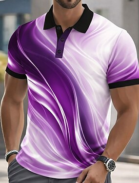 Per uomo Astratto Linea Polo Manica Corta Magliette polo Camicie con Colletto Casual Athleisure Bottoni Primavera & Estate Blu Nero Viola