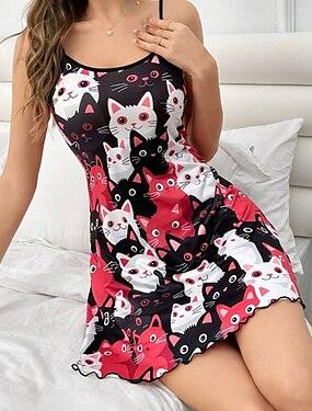 Per donna Pigiama Abbigliamento da Casa Accappatoio Moda Casual Comfort Animale Pigiama in raso di seta Chiusura anteriore Cardigan Quotidiano Casa Vestaglia Lunga Scollo a V Nero Bianco Estate