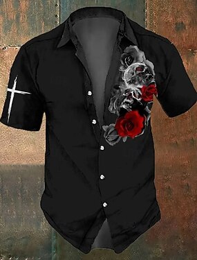 Camicia Costumi Teschi Croce da Uomo Camicia Button Up Manica Corta Stile Gotico Scadenza Estate Primavera Camicie Collo 3D Stampate Nera 1 Nera